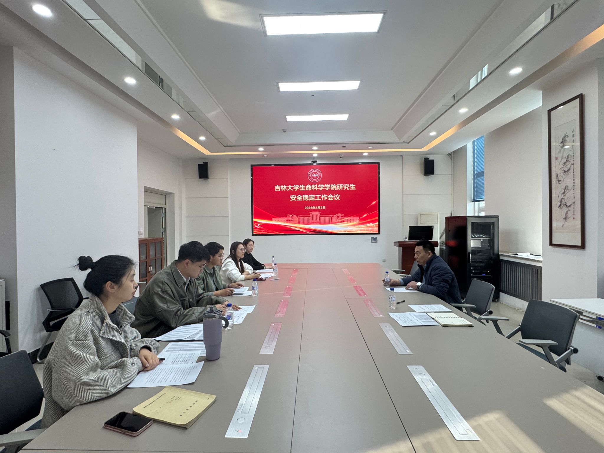 随后,任中帅就下一步投注研究生安全稳定工作重点任务作出具体部署,一是压实主体责任,明确导师、辅导员各自职责,将安全工作纳入日常管理考核,健全联动机制,搭建导师、辅导员、研究生沟通平台,实现学生动态精准掌握,形成协同发力的安全管理体系,为研究生科研学习和成长成才筑牢安全防线;二是强化隐患排查,聚焦实验室试剂规范存放、实验操作流程、宿舍用电安全等重点领域,开展拉网式排查,建立隐患台账并限期整改;三是加强教育引导,常态化开展实验安全、网络反诈、心理健康等专题教育,提升研究生安全防范意识和自救能力,对负责研究生群体常态化开展谈心谈话工作精准掌握学生思想动态,做到隐患早发现、早处置;四是全面推行“纵横交叉”网格化管理模式,由主管副书记担任网格长,全体辅导员担任网格员,将管理触角延伸至科研、学习、生活的每一个角落,织密织牢校园安全防护网。